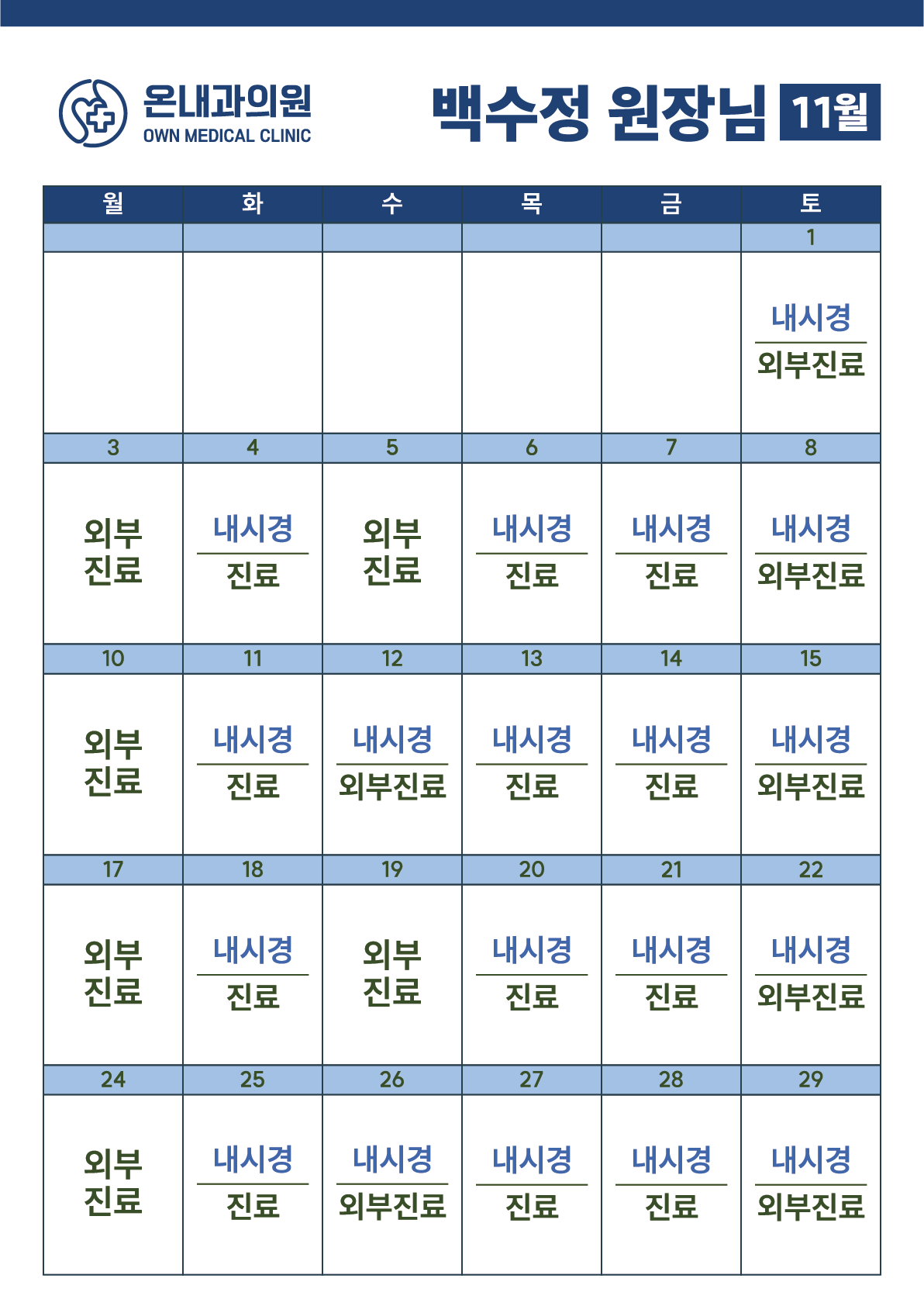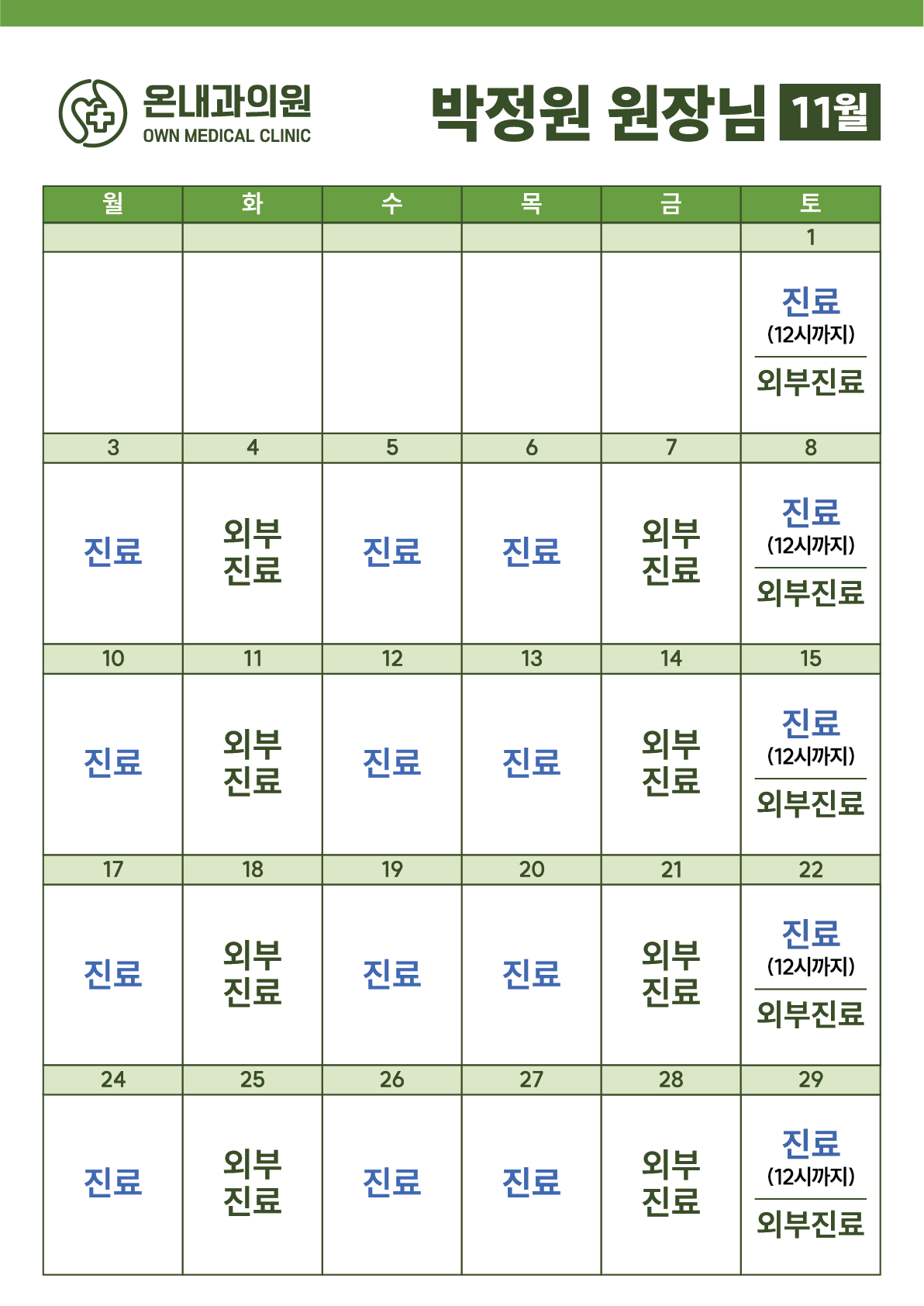 11월 의료진 휴진, 토요일 진료일정 안내드립니다.