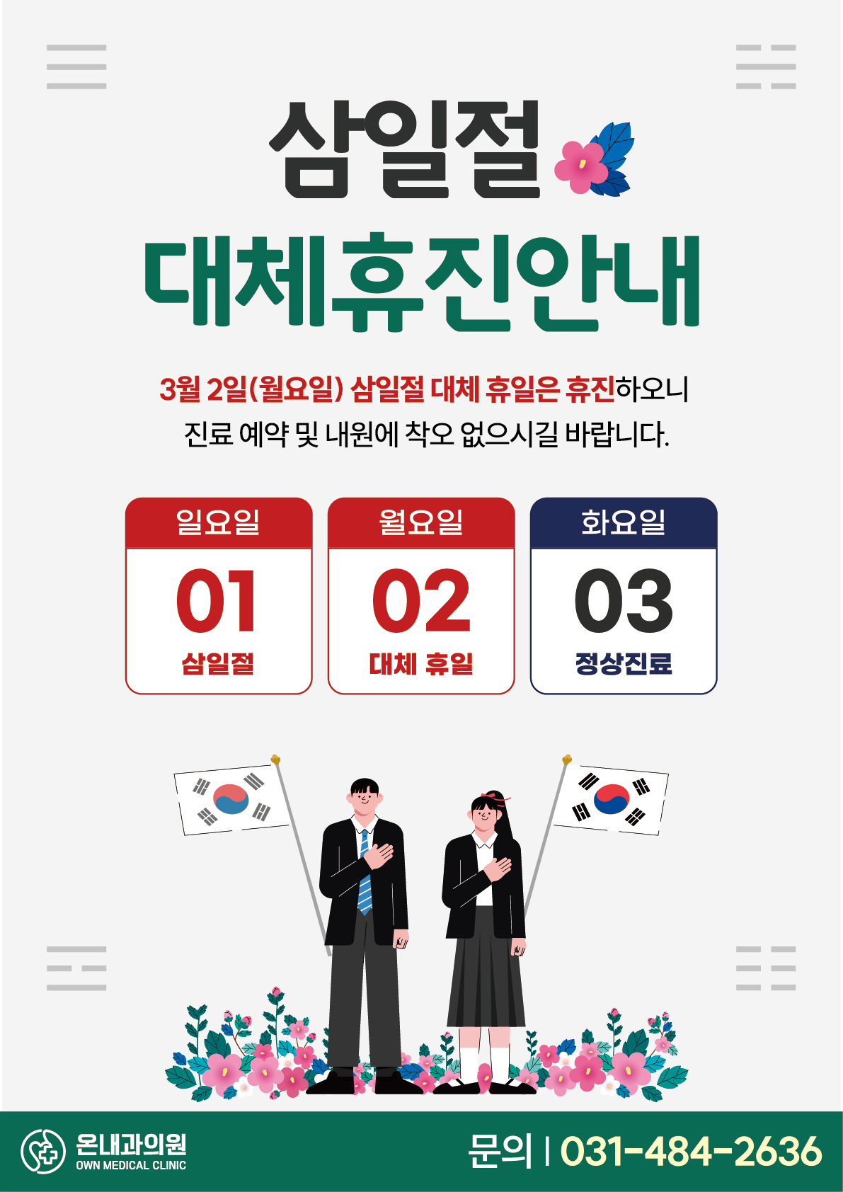 3월 2일(월) 삼일절 대체 휴일 휴진 이오니