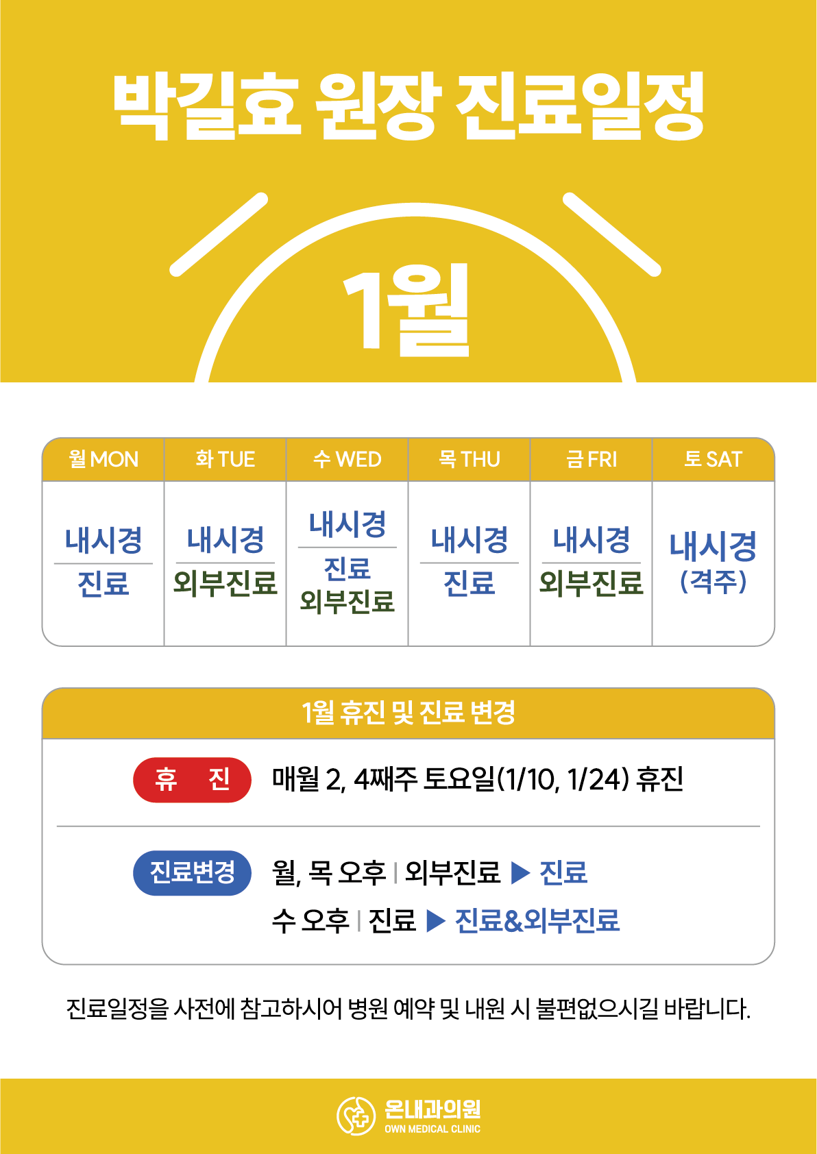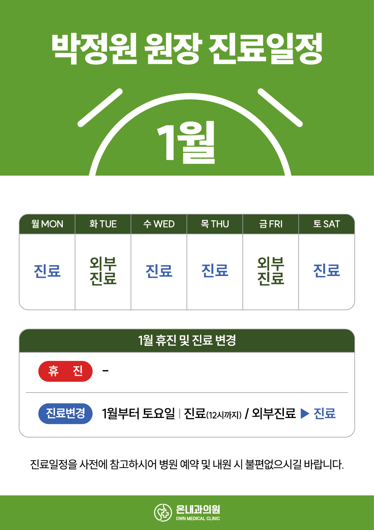 1월 의료진 휴진, 토요일 진료일정 안내드립니다.